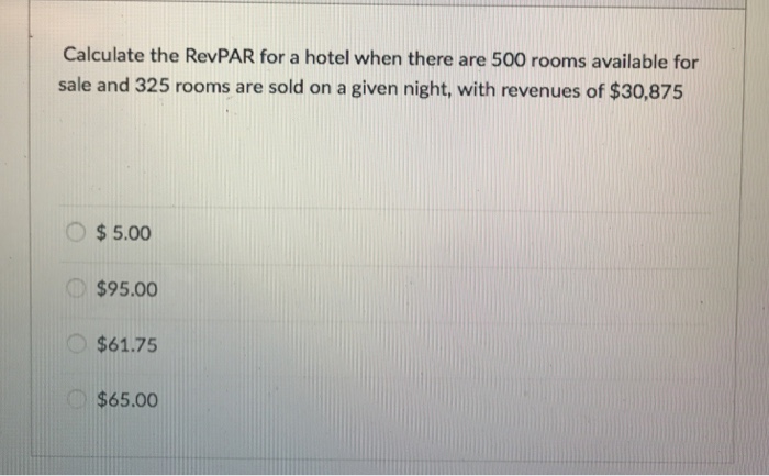 How To Calculate Revpar In Hotel : If a hotel charges, on average, $80 per night and usually fills 45 of their 50 rooms (or, 85% occupancy), their revpar would be calculated:. Occupancy rate x adr or total room revenue / total available rooms. Revpar = total rooms revenue / total rooms available during period. Book now, pay when you stay Rooms revenue / rooms available; Beach houses, cabins, condos, villas, resorts & more
